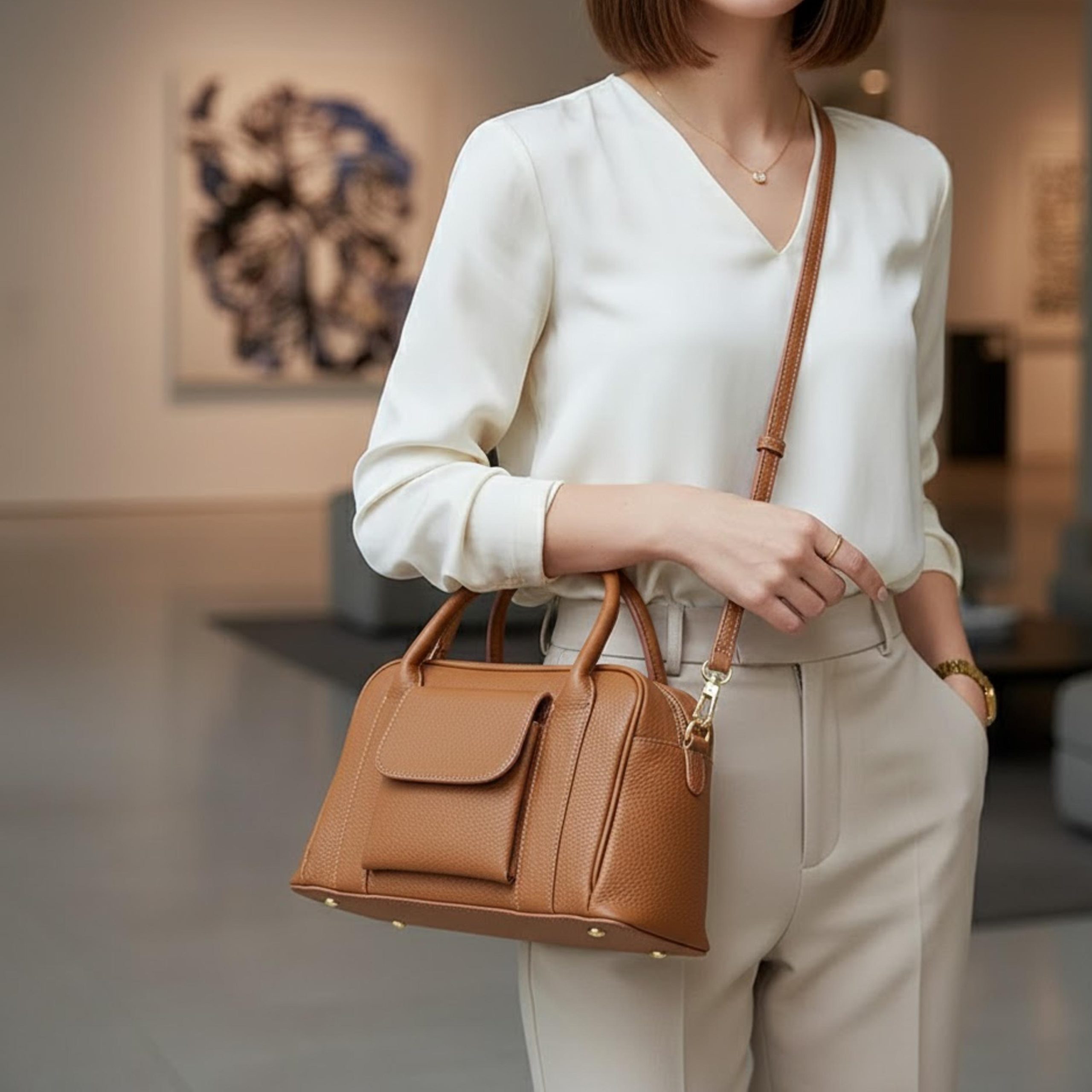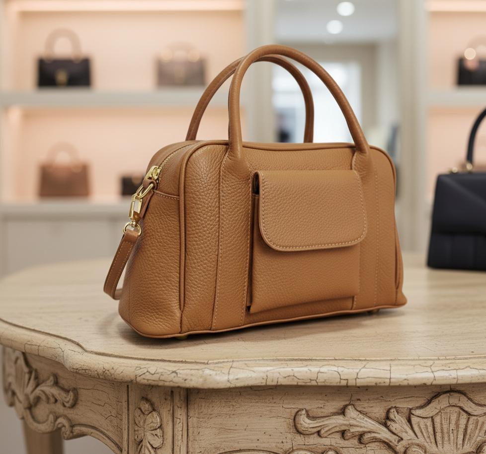 Discover a classic cowhide handbag crafted from genuine leather for modern everyday elegance. The structured body, premium texture and clean silhouette create a timeless shoulder bag designed for effortless daily style.