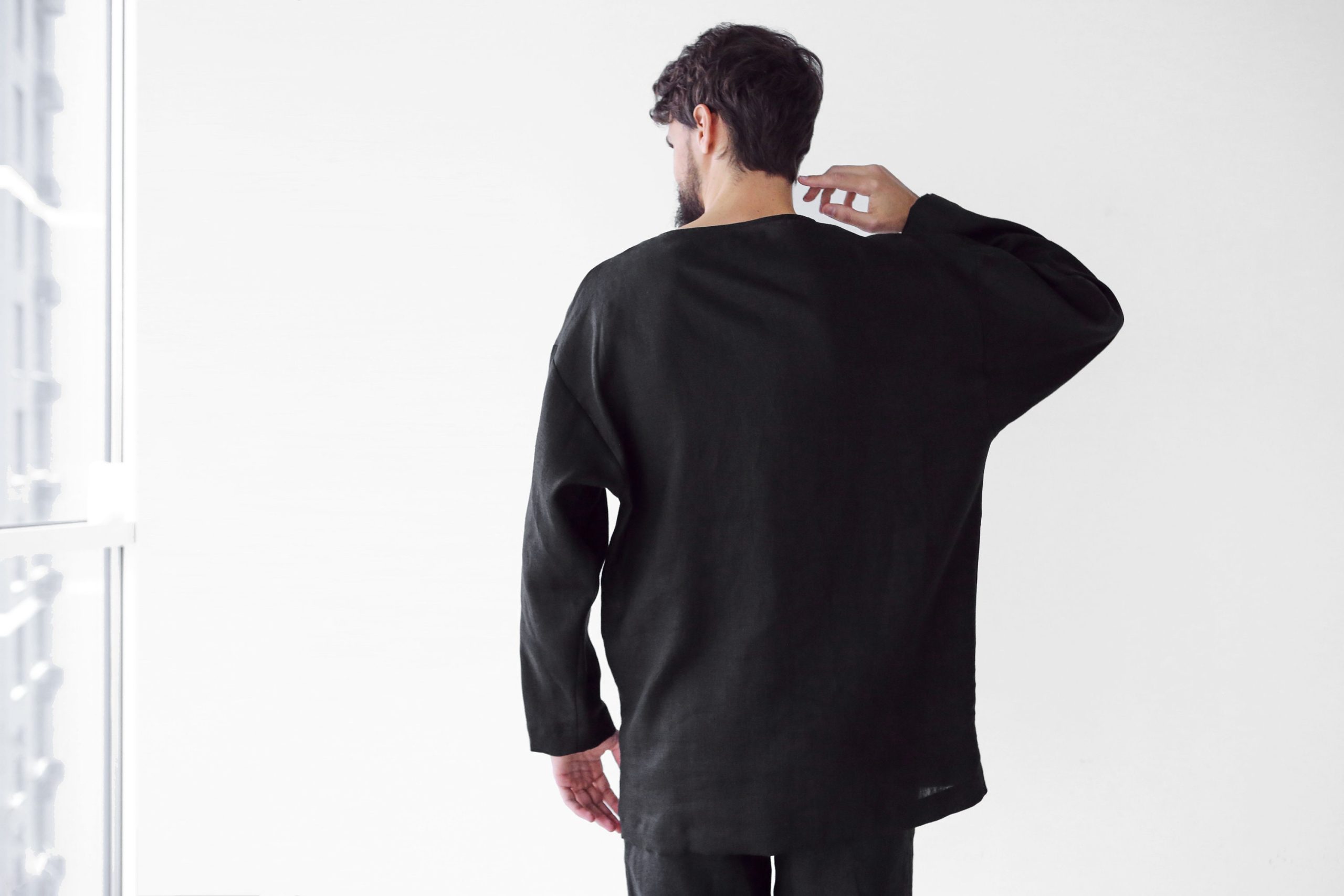 Mens Linen Oversize Sweatshirt Black Shirt For Men